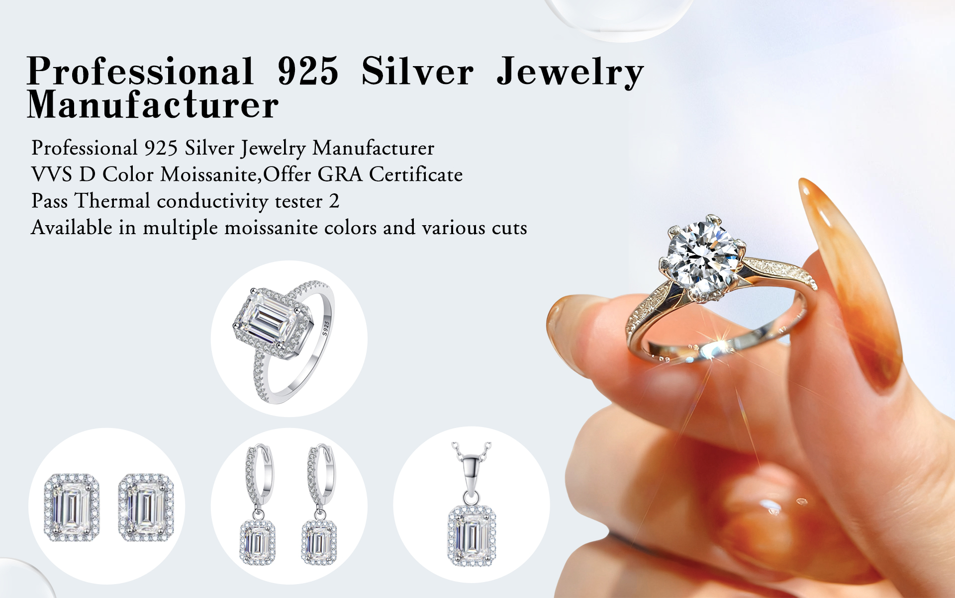 Precio bajo GRA VVS1 D Color Moissanite anillo colgante collar pendientes conjuntos de joyería 925 plata esterlina mujeres boda joyería fina